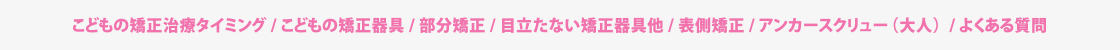 治療方法は多種多様です。ご予算、器具の種類、身体の負担、治療期間などご希望に添った治療計画をご提案させていただきます。 目安としては、こども12歳永久歯が揃うまで、大人2年〜5年です。 |